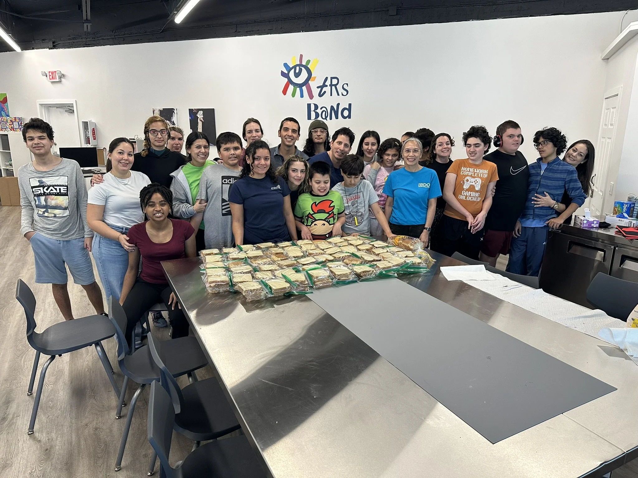 Rising Start students, teachers and volunteers preparing sandwiches for our community service program: